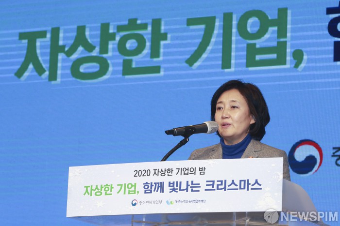 [서울=뉴스핌] 이형석 기자 = 박영선 중소벤처기업부 장관이 17일 오후 서울 여의도 중소기업중앙회에서 열린 2020 자상한 기업의 밤에서 인사말을 하고 있다. 2020.12.17 leehs@newspim.com