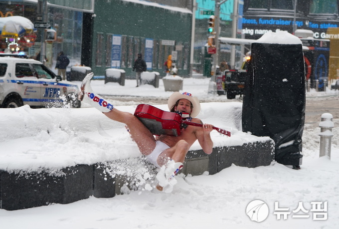 | 뉴욕 겨울폭풍 노리스터와 '쿵'하는 '벌거벗은 카우보이' [사진=로이터 뉴스핌] |