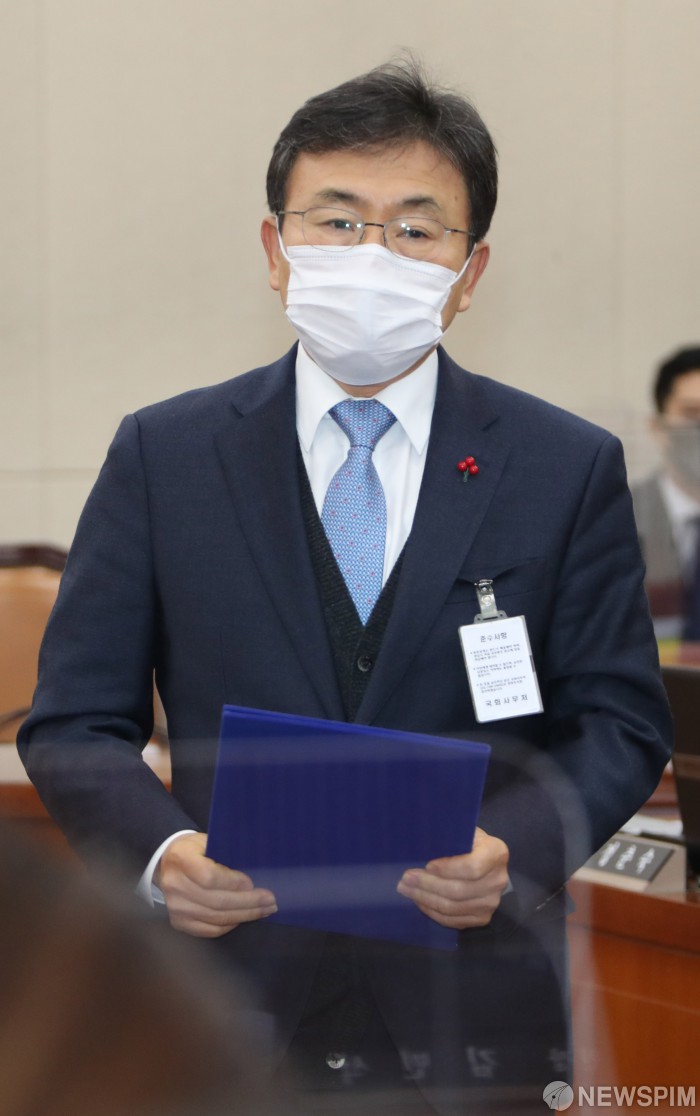 [서울=뉴스핌] 최상수 기자 = 권덕철 보건복지부 장관 후보자가 22일 국회 보건복지위원회에서 열린 인사청문회에서 후보자 선서를 마치고 선서문을 위원장에게 전달하기 위해 이동하고 있다. 2020.12.22 kilroy023@newspim.com