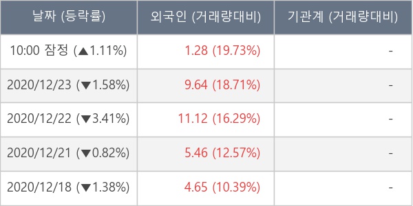 [표] 외국인ㆍ기관 순매매량 (단위 만주)