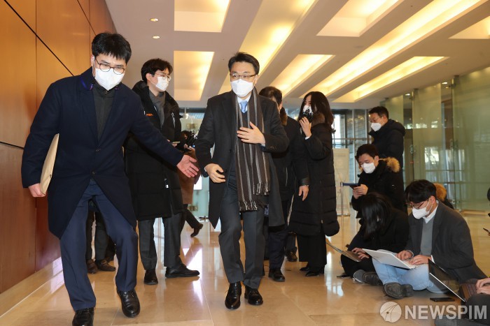 [서울=뉴스핌] 윤창빈 기자 = 김진욱 고위공직자범죄수사처장 후보자가 31일 서울 종로구의 한 빌딩에 마련된 인사청문회 준비 사무실로 출근하고 있다. 2020.12.31 pangbin@newspim.com