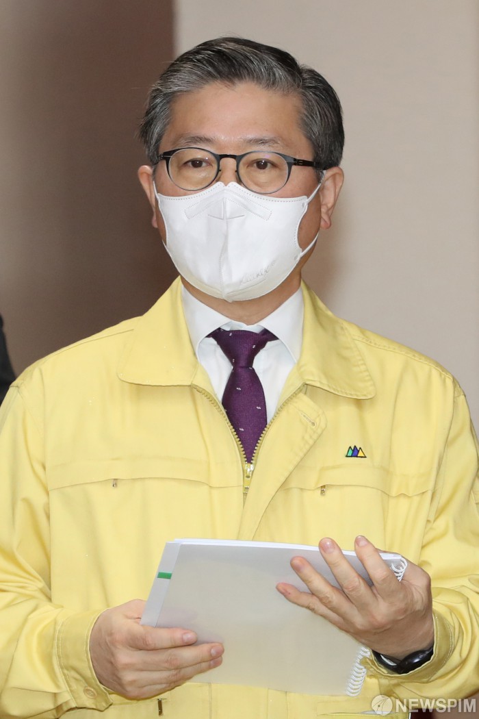 [서울=뉴스핌] 김학선 기자 = 변창흠 국토교통부 장관이 6일 서울 종로구 정부서울청사에서 열린 비상경제 중앙대책본부 회의 겸 한국판 뉴딜 관계장관회의에 참석하고 있다. 2021.01.06 yooksa@newspim.com