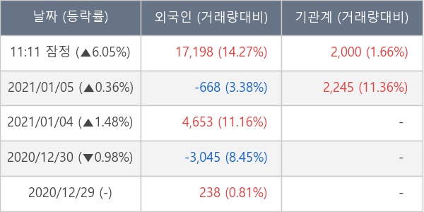 [표] 외국인ㆍ기관 순매매량 (단위 주)