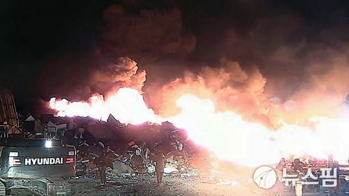 [포항=뉴스핌] 남효선 기자 = 9일 오후 8시7분쯤 경북 포항시 남구 호동 쓰레기매립장에서 원인을 알 수 없는 화재가 발생해 소방당국이 펌프차와 물탱크, 화학차량 등 진화 차량과 장비 25대와 소방대 등 진화인력 80여명을 긴급 투입해 쓰레기 분리작업과 함께 화재 확산 차단을 위한 방어선을 구축하고 진화를 서두르고 있다. 이곳 화재 발생 쓰레기매립장에는 9000여t의 생활쓰레기가 쌓여있는 것으로 알려졌다. 현재까지 인명 피해는 발생하지 않았다. 화재가 발생한 포항시 남구지역의 오후 10시 현재 기온은 영하 7도이며, 5.2m/s의 바람이 불고 있다.[사진=경북소방본부] 2021.01.09 nulcheon@newspim.com