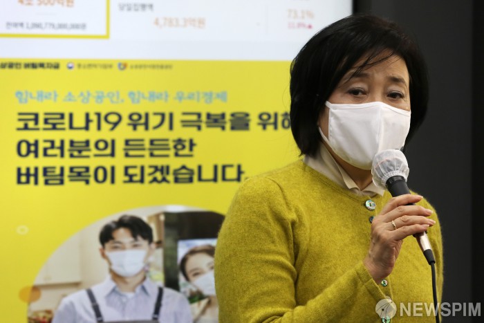 [서울=뉴스핌] 백인혁 기자 = 박영선 중소벤처기업부 장관이 13일 오후 서울 마포구 소상공인시장진흥공단 서울강원지역본부를 찾아 '소상공인 버팀목자금' 집행상황을 보고 받은 뒤 취재진의 질문에 답변하고 있다. 2021.01.13 dlsgur9757@newspim.com