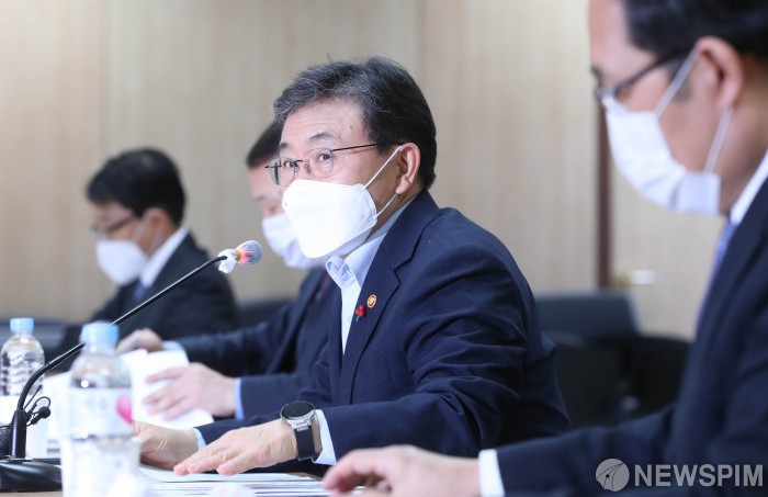 [서울=뉴스핌] 김학선 기자 = 권덕철 보건복지부 장관이 15일 오후 서울 중구 한국건강증진개발원에서 열린 이용자 중심 의료혁신협의체 제6차 회의에서 발언하고 있다. 이날 회의에서는 코로나19 백신접종 추진방향과 의료인력 대책 등에 대해 논의했다. 2021.01.15 yooksa@newspim.com