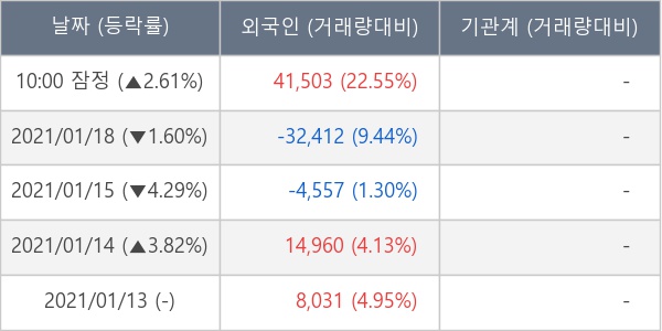[표] 외국인ㆍ기관 순매매량 (단위 주)