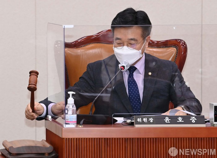 [서울=뉴스핌] 이형석 기자 = 윤호중 국회 법제사법위원장이 20일 국회에서 열린 법제사법위원회 전체회의에서 의사봉을 두드리고 있다. 이날 법사위는 김진욱 고위공직자범죄수사처장 후보자 인사청문 경과보고서 채택의 건을 통과시켰다. 2021.01.20 leehs@newspim.com