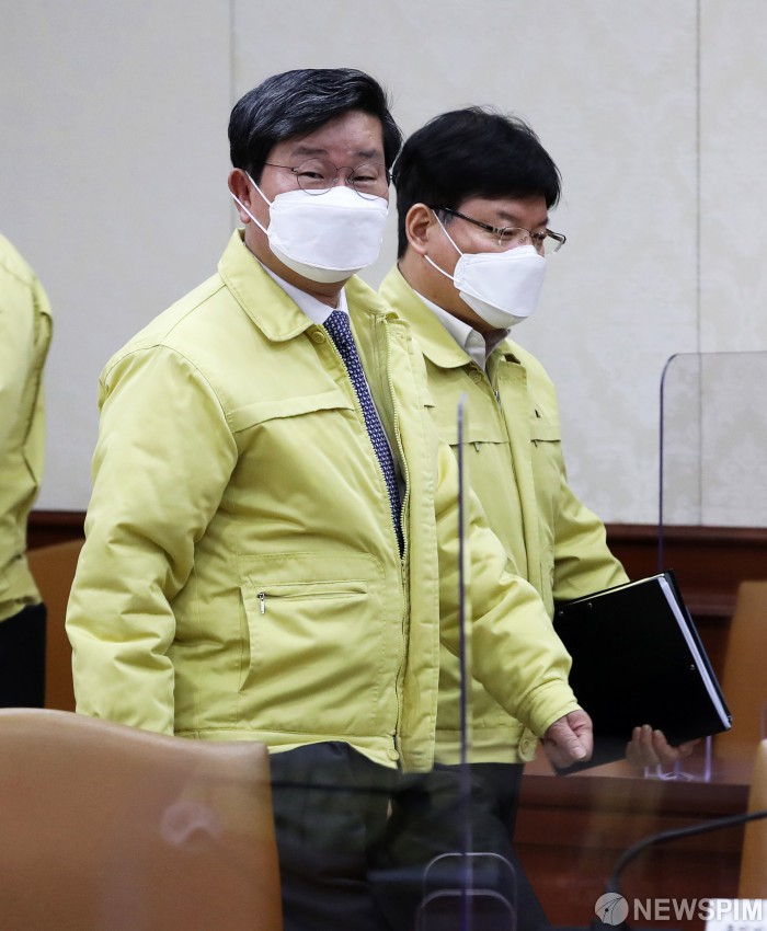 [서울=뉴스핌] 백인혁 기자 = 전해철 행정안전부 장관이 21일 오전 서울 종로구 정부서울청사에서 열린 신종 코로나바이러스 감염증(코로나19) 대응 중앙재난안전대책본부 회의에 참석하고 있다. 2021.01.21 dlsgur9757@newspim.com