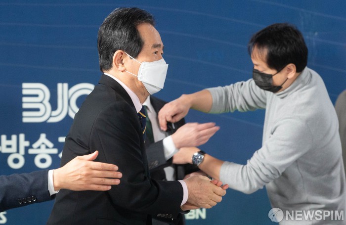[서울=뉴스핌] 윤창빈 기자 = 정세균 국무총리가 28일 오전 서울 양천구 대한민국예술인센터에서 BJC 한국방송기자클럽 주최로 열린 초청토론회에 참석하고 있다. 2021.01.28 pangbin@newspim.com