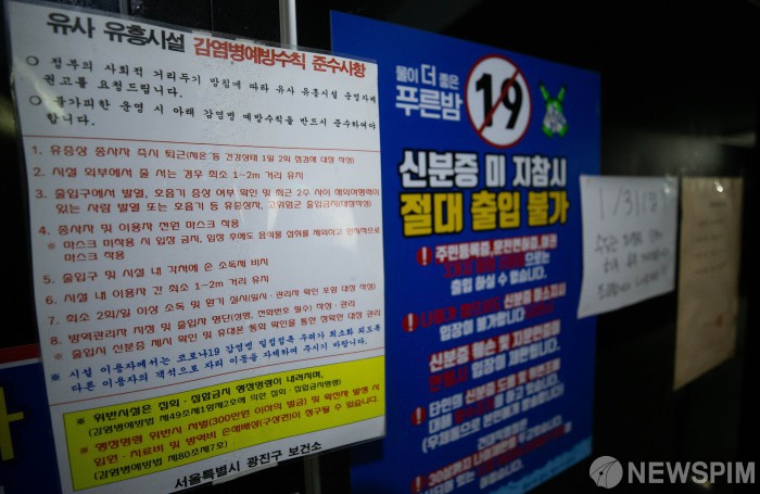 [서울=뉴스핌] 윤창빈 기자 = 서울 광진구 소재 ‘포차끝판왕’과 관련해 누적 확진자가 지난 5일 51명까지 늘어났다. 서울 광진구가 최근 헌팅포차 신종 코로나바이러스 감염증(코로나19) 집단감염과 관련해 강력대응에 나선다. 광진구는 코로나19 집단감염 재발방지를 위해 행정명령을 내렸다. 이에 따라 대상시설에서 춤을 추거나 노래를 부르는 행위, 합석 또는 이를 방조·묵인하는 행위 등이 금지된다. 사진은 6일 오후 확진자가 발생한 서울 광진구의 포차. 2021.02.06 pangbin@newspim.com
