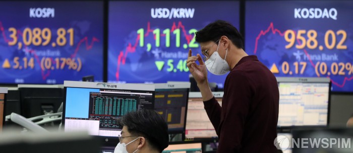 [서울=뉴스핌] 김학선 기자 = 10일 코스피 지수는 전 거래일보다 3.46p(0.11%) 오른 3,088.13으로 개장해 등락을 거듭하고 있다. 원·달러환율은 전일대비 5.6원 내린 1,111.0원에 출발했다. 이날 오전 서울 중구 하나은행 딜링룸에서 딜러들이 업무를 보고 있다. 2021.02.10 yooksa@newspim.com