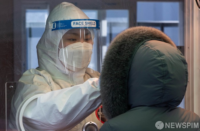 [서울=뉴스핌] 윤창빈 기자 = 17일 오전 서울 중구 코로나19 임시선별검사소에서 시민들이 검사를 받고 있다. 오늘(17일) 0시 기준 국내 신종 코로나바이러스 감염증(코로나19) 신규 확진자 수는 621명으로, 38일만에 600명 대로 올라섰다. 2021.02.17 pangbin@newspim.com