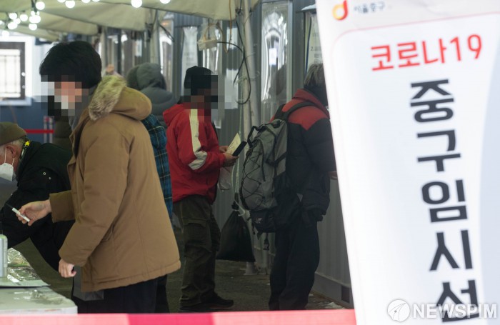 [서울=뉴스핌] 윤창빈 기자 = 17일 오전 서울 중구 코로나19 임시선별검사소에서 시민들이 검사를 받고 있다. 오늘(17일) 0시 기준 국내 신종 코로나바이러스 감염증(코로나19) 신규 확진자 수는 621명으로, 38일만에 600명 대로 올라섰다. 2021.02.17 pangbin@newspim.com