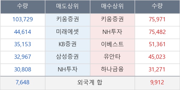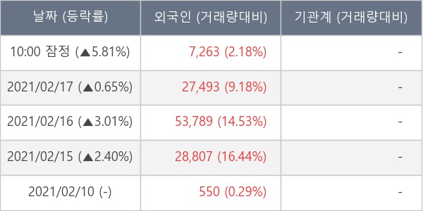 [표] 외국인ㆍ기관 순매매량 (단위 주)