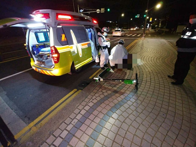 이 사고로 진동킥보드 운전자 외국인 A(20대) 씨가 얼굴 등 타박성을 입고 인근 병원에서 치료를 받았다.
