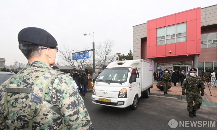[수원=뉴스핌] 사진공동취재단 = 이천시 지트리비앤티 물류센터에서 출발한 아스트라제네카 백신이 25일 오전 경기도 수원시 권선구보건소에서 도착하여 이송을 마친 뒤 다음 배송지역으로 출발하고 있다. 2021.02.25 photo@newspim.com