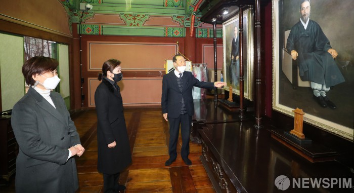 [서울=뉴스핌] 백인혁 기자 = 4·7 재보궐선거에 출마하는 나경원 국민의힘 서울시장 예비후보와 윤봉길 의사의 손녀 윤주경 국민의힘 의원이 1일 오전 서울 용산구 효창공원 의열사를 찾아 이종래 효창원7위선열기념사업회 회장으로부터 설명을 듣고 있다. 2021.03.01 dlsgur9757@newspim.com