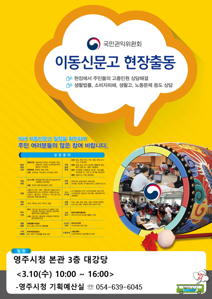 [영주=뉴스핌] 이민 기자 = 경북 영주시는 국민권익위원회 주관으로 '이동신문고'를 운영한다고 4일 밝혔다.