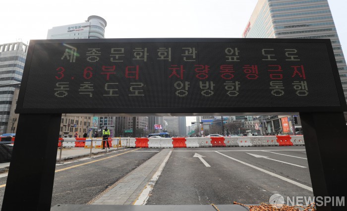 광화문 서측차로 폐쇄...동측 양방향 통행 시작