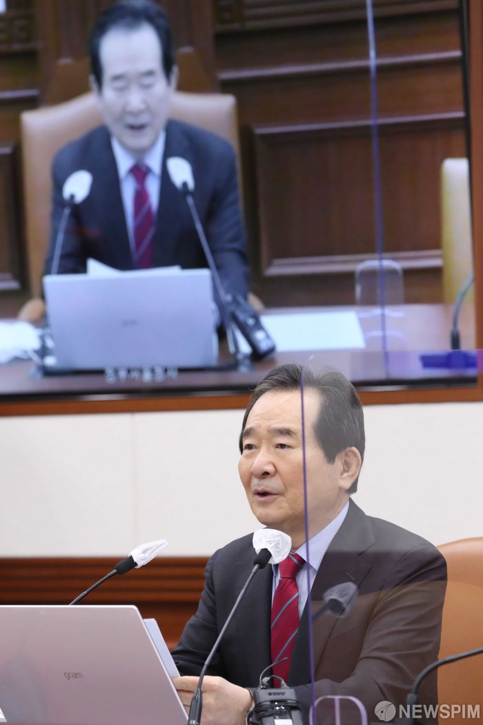 [서울=뉴스핌] 백인혁 기자 = 정세균 국무총리가 12일 오전 서울 종로구 정부서울청사에서 열린 신종 코로나바이러스 감염증(코로나19) 백신 및 치료제 점검 회의에서 모두발언을 하고 있다. 2021.03.12 dlsgur9757@newspim.com