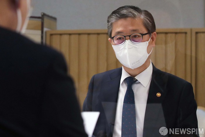 [서울=뉴스핌] 백인혁 기자 = 변창흠 국토교통부 장관이 17일 오전 서울 종로구 정부서울청사에서 열린 제17차 부동산시장 점검 관계장관회의에 참석해 홍남기 부총리 겸 기획재정부 장관의 모두발언을 경청하고 있다. 2021.03.17 dlsgur9757@newspim.com