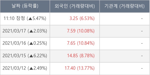 [표] 외국인ㆍ기관 순매매량 (단위 만주)