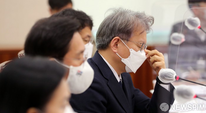 [서울=뉴스핌] 최상수 기자 = 권칠승 중소벤처기업부 장관이 18일 오전 서울 여의도 국회에서 열린 산업통상자원중소벤처기업위원회 전체회의에서 소상공인 손실보상 관련 의원 질의를 듣고 있다. 2021.03.18 kilroy023@newspim.com