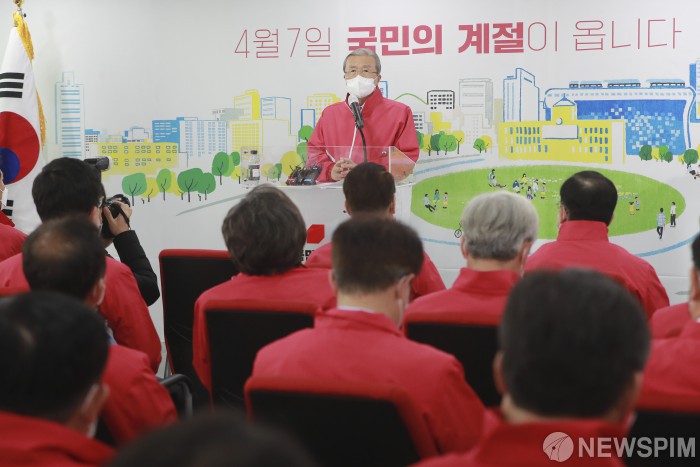 [서울=뉴스핌] 이형석 기자 = 김종인 국민의힘 비상대책위원장이 19일 오후 서울 여의도 중앙당사에서 열린 서울시장 후보 및 서울당협위원장 회의에서 인사말을 하고 있다. 2021.03.19 leehs@newspim.com