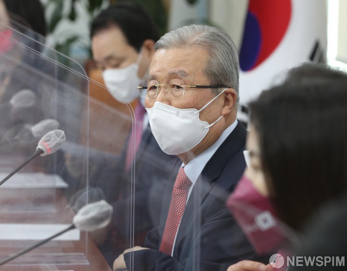 [서울=뉴스핌] 이형석 기자 = 김종인 국민의힘 비상대책위원장이 22일 오전 국회에서 열린 비상대책위원회의에서 모두발언 하고 있다. 2021.03.22 leehs@newspim.com
