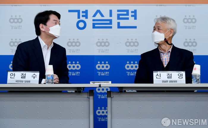 [서울=뉴스핌] 국회사진취재단 = 안철수 국민의당 서울시장 후보와 신철영 경실련 공동대표가 22일 서울 종로구 경제정의실천시민연합에서 열린 ‘국민의당-경실련 정책협약식’에서 대화하고 있다. 2021.03.22 photo@newspim.com