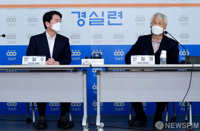[서울=뉴스핌] 국회사진취재단 = 신철영 경실련 공동대표가 22일 서울 종로구 경제정의실천시민연합에서 열린 ‘국민의당-경실련 정책협약식’에서 인사말을 하고 있다. 왼쪽은 안철수 국민의당 서울시장 후보. 2021.03.22 photo@newspim.com
