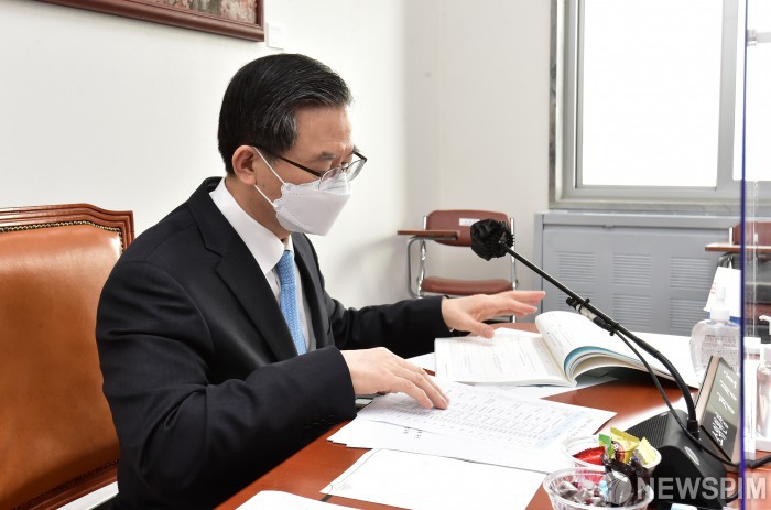 [서울=뉴스핌] 이형석 기자 = 정성호 소위원장이 23일 서울 여의도 국회에서 열린 국회 예산결산위원회 2021년도 제1회추경예산안등조정소위원회에서 심의에 앞서 자료를 살피고 있다. 2021.03.23 leehs@newspim.com