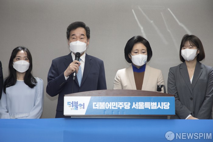 [서울=뉴스핌] 최상수 기자 = 23일 오전 더불어민주당 서울시당 대회의실에서 더불어민주당 박영선 서울시장 후보의 "박영선캠프 2030 선거대책위원회 출범식"이 열린 가운데 이낙연 상임선대위원장이 인사말을 하고 있다. 2021.03.23 kilroy023@newspim.com