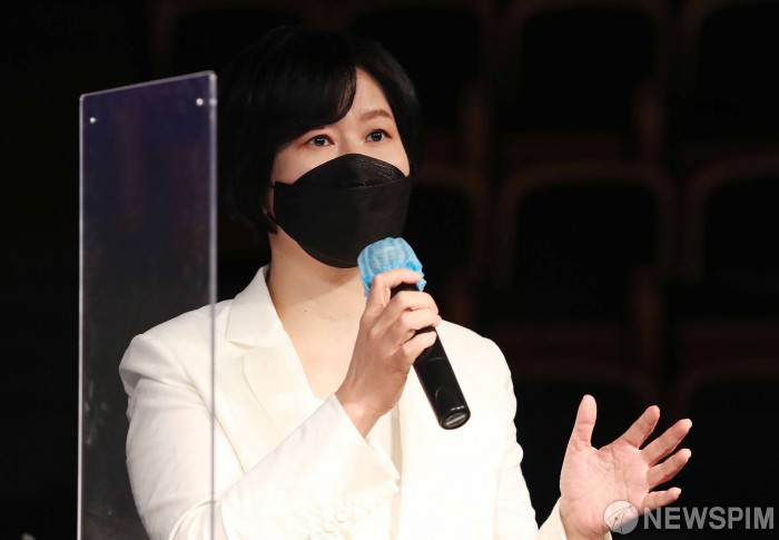 [서울=뉴스핌] 백인혁 기자 = 김철연 KT 스튜디오지니 공동대표가 23일 오전 서울 종로구 광화문 KT스퀘어에서 열린 KT 미디어컨텐츠 사업전략 발표 기자간담회에서 취재진의 질문에 답변하고 있다. 2021.03.23 dlsgur9757@newspim.com
