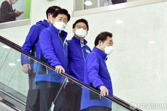 [서울=뉴스핌] 최상수 기자 = 4.7 재보선이 일주일 앞으로 다가온 31일 이낙연 더불어민주당 상임선대위원장이 서울 여의도 국회 소통관에서 대국민 호소 기자회견 후 소통관을 나서고 있다. 2021.03.31 kilroy023@newspim.com