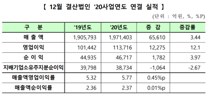 연결기준 매출액 3.44%↑...영업익 12.1%·순이익 3.97%↑