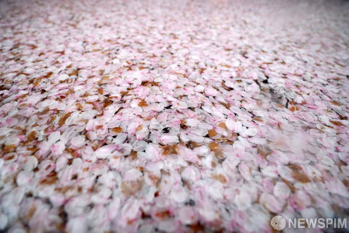 [서울=뉴스핌] 정일구 기자 = 전국 대부분 지역에서 봄비가 내린 3일 오후 서울 영등포구 여의동로에 벚꽃잎이 떨어져 있다. 2021.04.03 mironj19@newspim.com