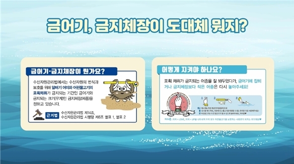 해수부는 수산자원보호에 대한 국민들의 인식을 높이기 위해 지난 8일부터 금어기·금지체장 관련 질의응답집과 어린이 대상 수산자원보호 교육영상을 배포한다. 질의응답집에는 금어기·금지체장 제도에 대한 주요 질의와 답변이 담겼으며 전국 지방자치단체와 어업 및 낚시 관련 업·단체, 언론사와 교육기관 등에 배포될 예정이다.