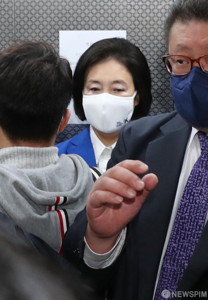 [서울=뉴스핌] 국회사진취재단 = 4·7 재보궐선거 더불어민주당 박영선 서울시장 후보가 7일 밤 서울 종로구 안국빌딩 선거캠프를 찾아 캠프 관계자들과 인사를 나눈 뒤 캠프를 떠나고 있다. 2021.04.07 photo@newspim.com