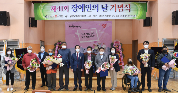 [거창=뉴스핌] 정철윤 기자 = 경남 거창군은 20일 장애인복합문화관에서 구인모 군수, 군의원, 도의원을 비롯한 장애인 등 70여 명이 참석한 가운데 제41회 장애인의 날 행사를 개최했다고 밝혔다.