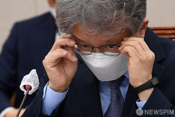 [서울=뉴스핌] 이형석 기자 = 권칠승 중소벤처기업부 장관이 23일 오전 서울 여의도 국회에서 열린 산업통상자원중소벤처기업위원회 전체회의에 출석해 안경을 고쳐쓰고 있다. 2021.04.23 leehs@newspim.com