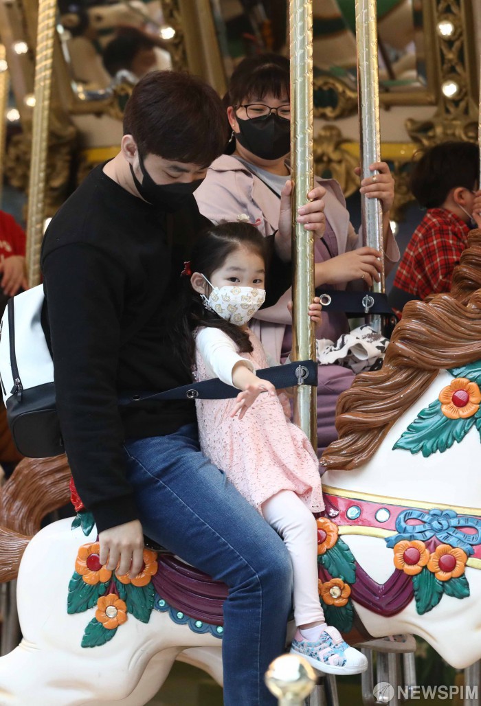 [서울=뉴스핌] 백인혁 기자 = 어린이날을 하루 앞둔 4일 오후 서울 송파구 롯데월드 어드벤처에서 어린이들이 즐거운 시간을 보내고 있다. 2021.05.04 dlsgur9757@newspim.com