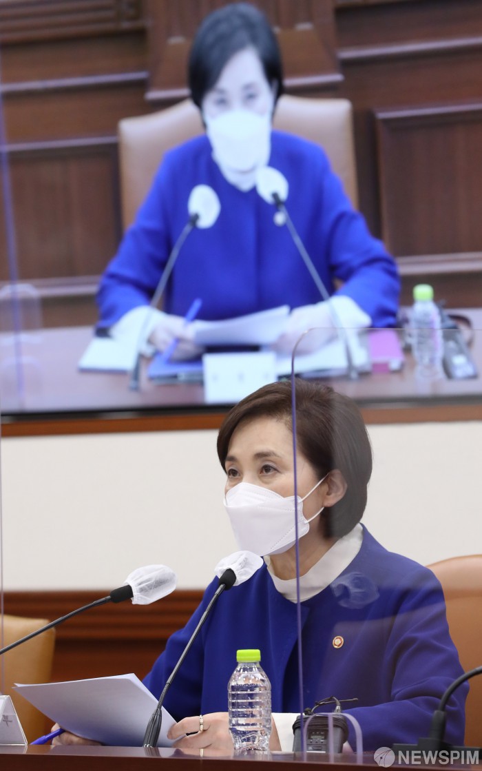 [서울=뉴스핌] 김학선 기자 = 유은혜 부총리 겸 교육부 장관이 4일 서울 종로구 정부서울청사에서 열린 사회관계장관회의를 주재하며 발언하고 있다. 2021.05.04 yooksa@newspim.com