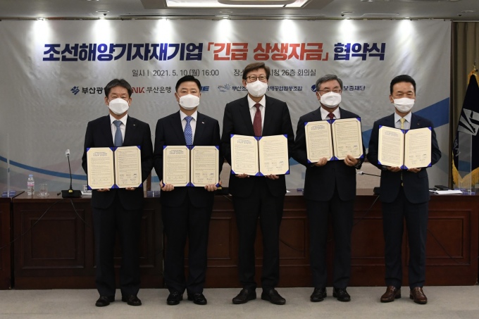 BNK부산은행은 10일 오후 부산시청에서 부산시, 대우조선해양㈜, 부산조선해양기자재공업협동조합, 부산신용보증재단과 '부산 조선해양기자재 긴급 자금지원 상생협력 업무협약'을 체결했다고 밝혓다.