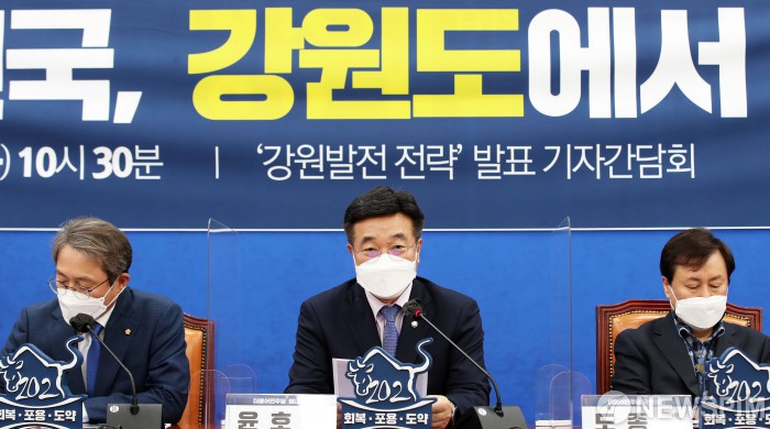 [서울=뉴스핌] 최상수 기자 = 윤호중 더불어민주당 원내대표가 11일 오전 서울 여의도 국회에서 열린 '강원발전 전략' 발표 기자간담회에서 발언하고 있다. 2021.05.11 kilroy023@newspim.com