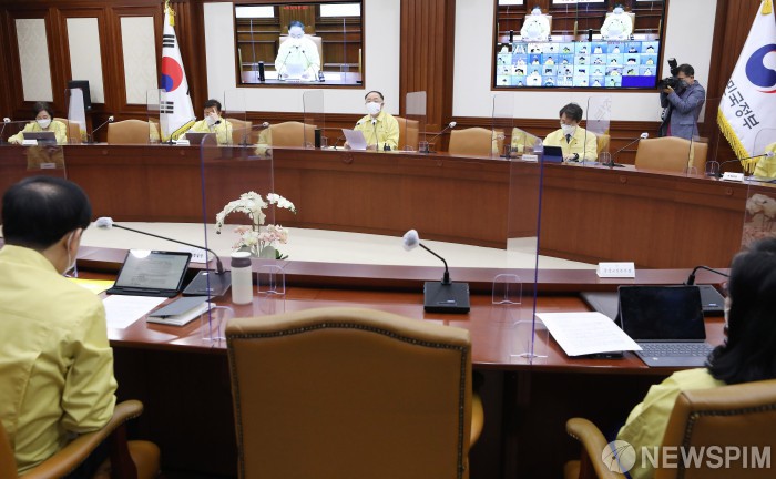 [서울=뉴스핌] 김학선 기자 = 홍남기 국무총리 직무대행이 12일 서울 종로구 정부서울청사에서 열린 코로나19 대응 중앙재난안전대책본부 회의에서 모두발언을 하고 있다. 2021.05.12 yooksa@newspim.com