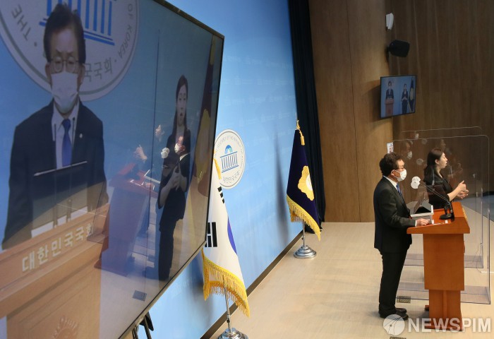 [서울=뉴스핌] 이형석 기자 = 유기홍 국회 교육위원장이 13일 오후 서울 여의도 국회 소통관에서 ‘조희연 서울시교육감 공수처 1호 사건’ 관련 기자회견을 하고 있다. 2021.05.13 leehs@newspim.com