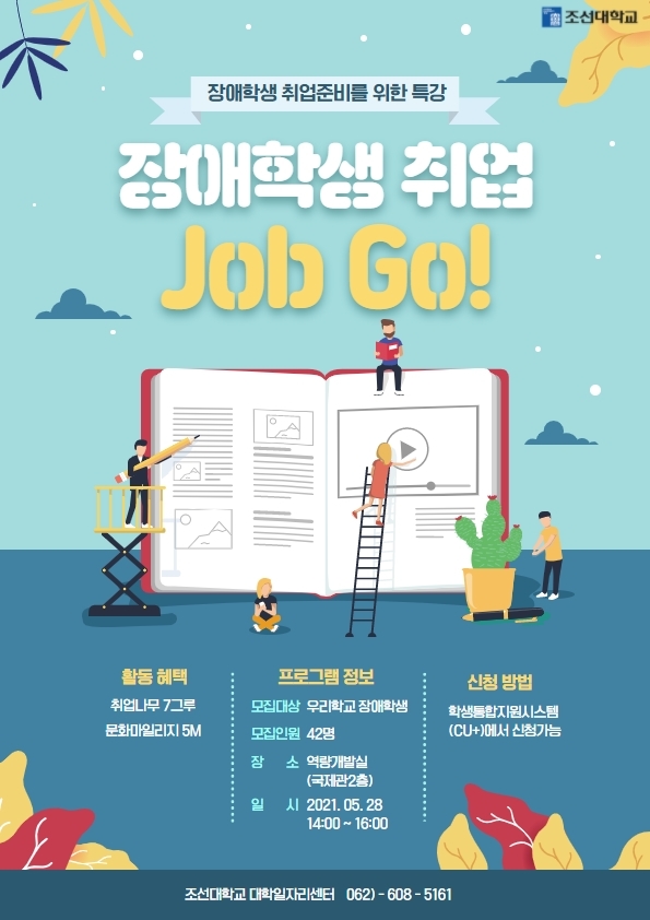 [광주=뉴스핌] 전경훈 기자 = 조선대학교 대학일자리센터와 장애학생지원센터가 오는 28일 장애학생 취업을 지원하기 위해 '장애학생 취업 Job Go'를 개최한다.