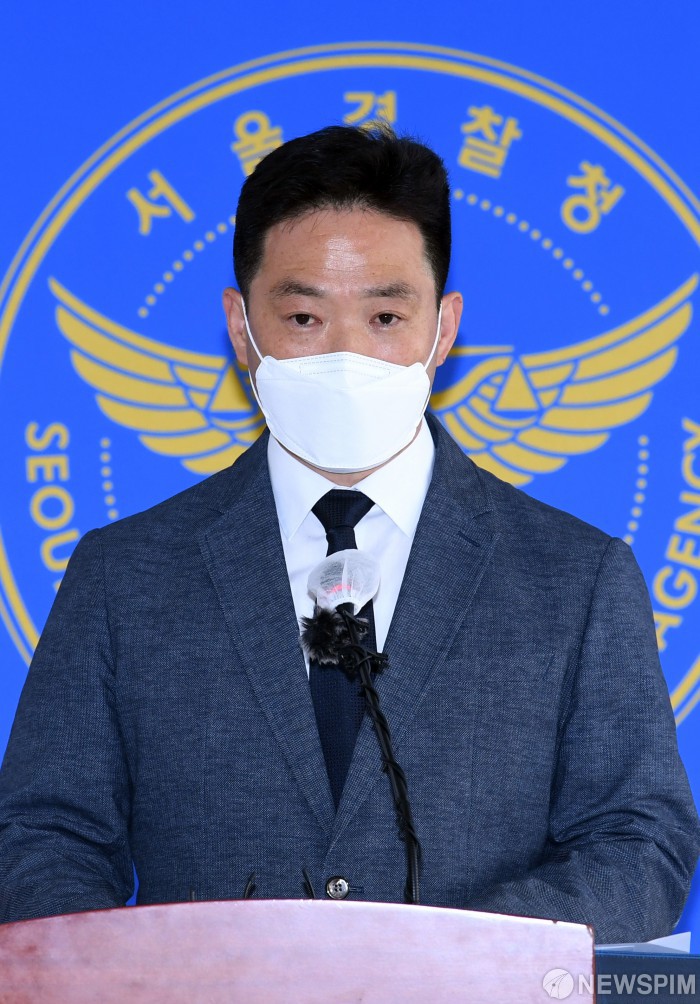 [서울=뉴스핌] 김학선 기자 = 한원횡 서울경찰청 형사과장이 27일 서울 종로구 서울경찰청 제2서경마루에서 한강 대학생 사망사고 중간 수사결과 발표를 하고 있다. 2021.05.27 yooksa@newspim.com